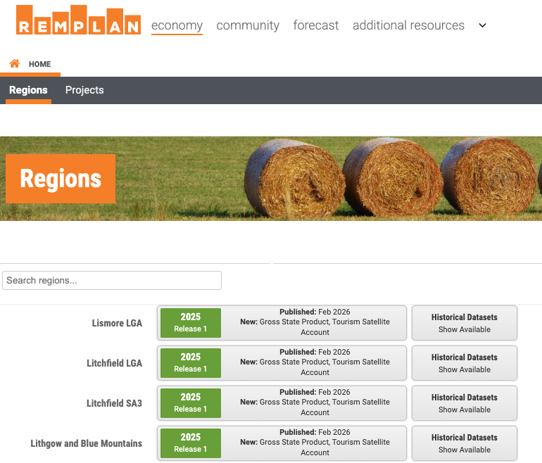 The 2025 REMPLAN Economy datasets incorporate the latest insights from the ABS 2024/2025 Tourism Satellite Account (TSA). Tourism estimates are available for states, regions and local government areas across Australia, and REMPLAN Economy software features economic impact modelling for tourism events, festivals and peak seasons.